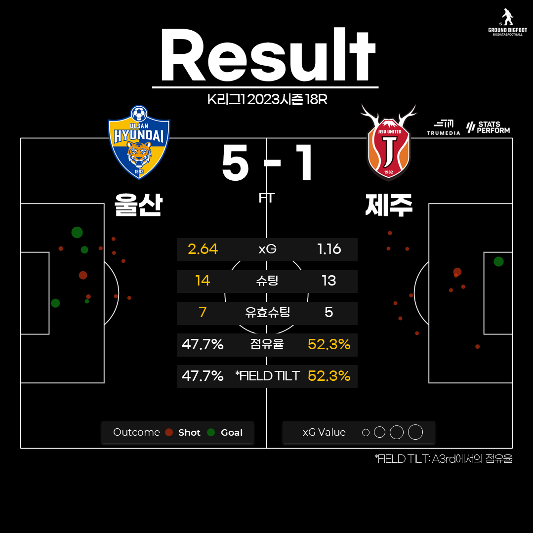 ๋ฐ์ค ์์์ 8๊ฐ์ ์ํ ์ ์๋ ํ๋๋ฐ, ์ด ์ค ์ ๋ฐ์ ๋์ ์ผ๋ก ์ ํ์์ผฐ์ต๋๋ค. xG๋ 2.64 ๋ 1.16์ผ๋ก ๋ ๋ฐฐ ์ด์ ์์ฐ์ง๋ง ์ํ ์๋ 14 ๋ 13์ผ๋ก ํ๋ ์ฐจ์ด์๊ณ , ์ดํํน์จ๋์์์ ์ ์ ์จ์ ์คํ๋ ค ์ ์ฃผ๊ฐ ์์ฐ๋ค์. ์ค์ฝ์ด ๋งํผ ๊ฒฝ๊ธฐ ๋ด์ฉ๊น์ง ํฌ๊ฒ ์ฐจ์ด๋์ง๋ ์์์ง๋ง ๊ณจ ๊ฒฐ์ ๋ ฅ์์ ์ธ์ฐ์ด ํฌ๊ฒ ์์๋ฉฐ ๋์น์ ๊ฑฐ๋ ์ ์์์ต๋๋ค.
